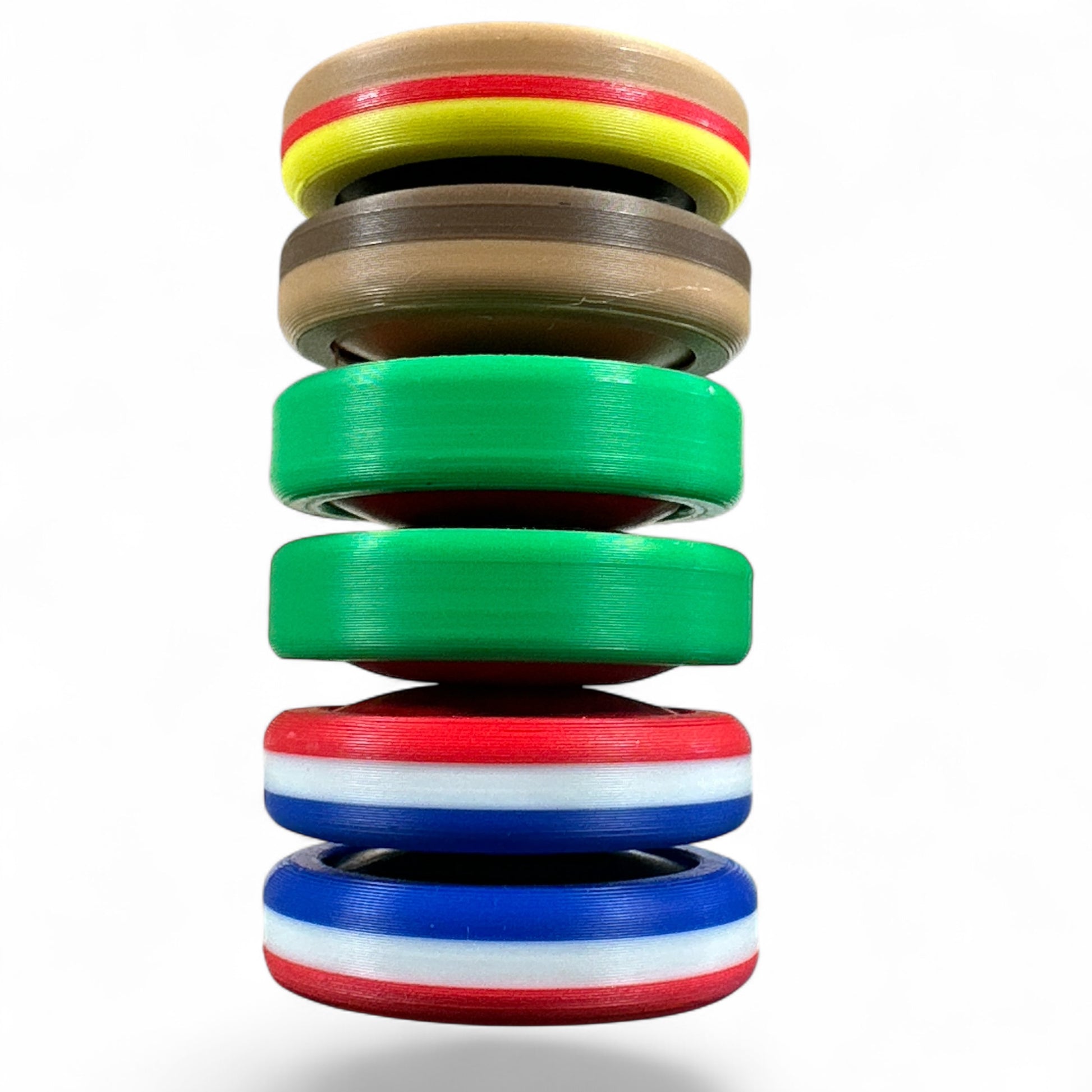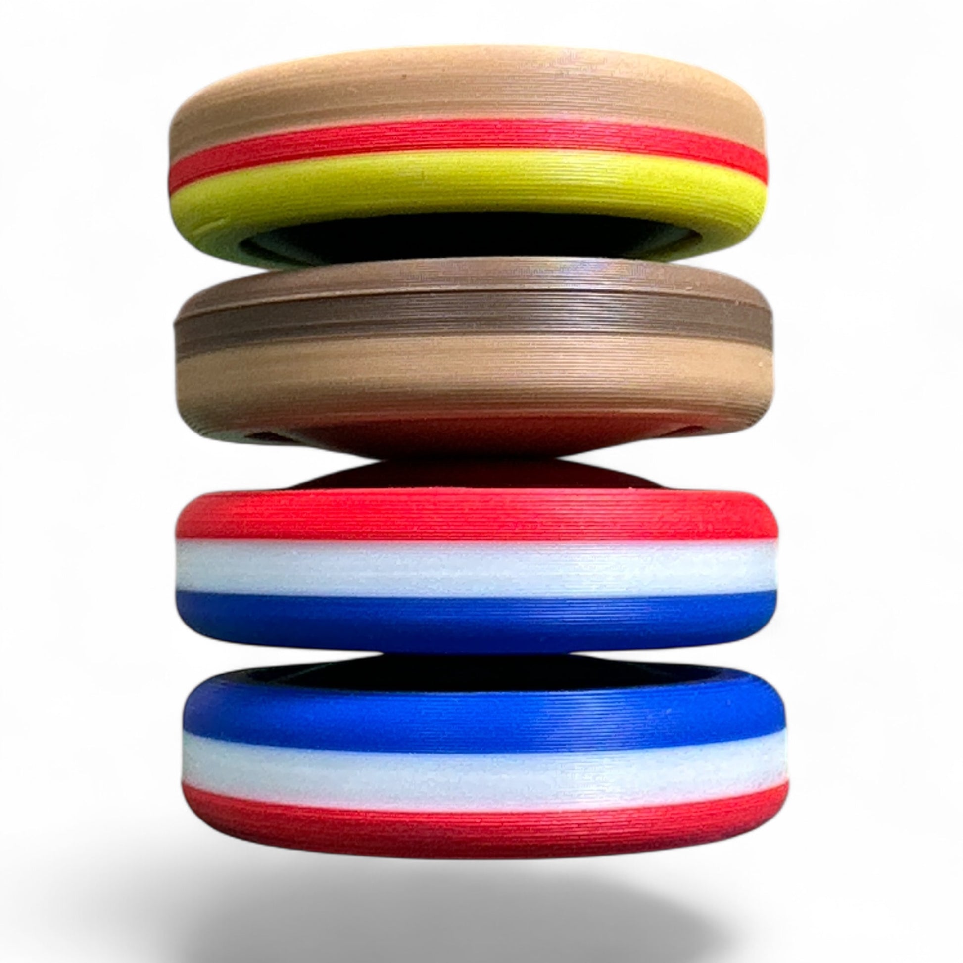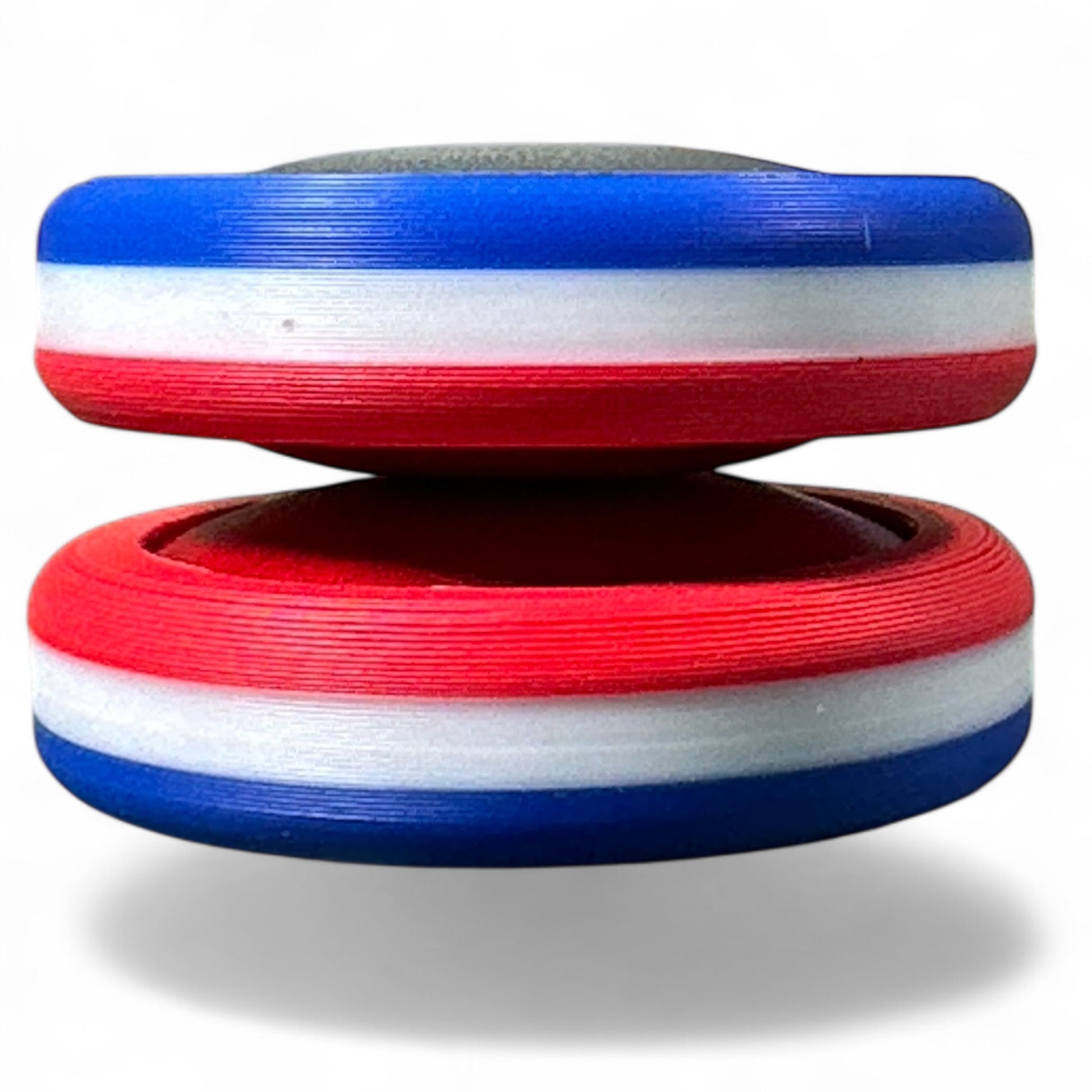 Stacked in patriotic symmetry, one Moon has red on top, one has blue. Spin them side by side and you've got a firework show for your fingers. Perfect for: